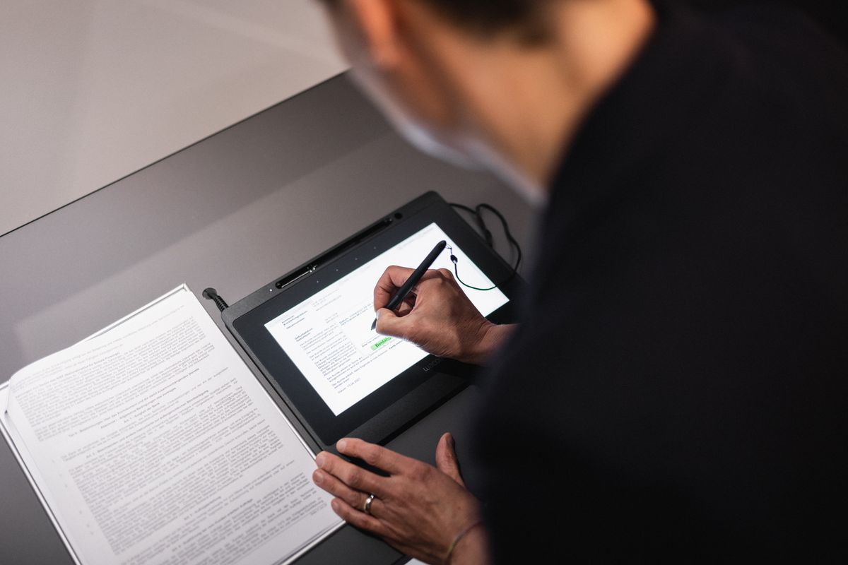Es sind keine technischen Vorkenntnisse erforderlich. Keine Knöpfe, kein Touchscreen, kein PIN-Code. Nur ein Stift für die digitale Unterschrift auf dem bereits bekannten Tablet. LuiS funktioniert so einfach und persönlich wie ein ganz normales Gespräch am Schalter. Von Mensch zu Mensch - auf Augenhöhe.