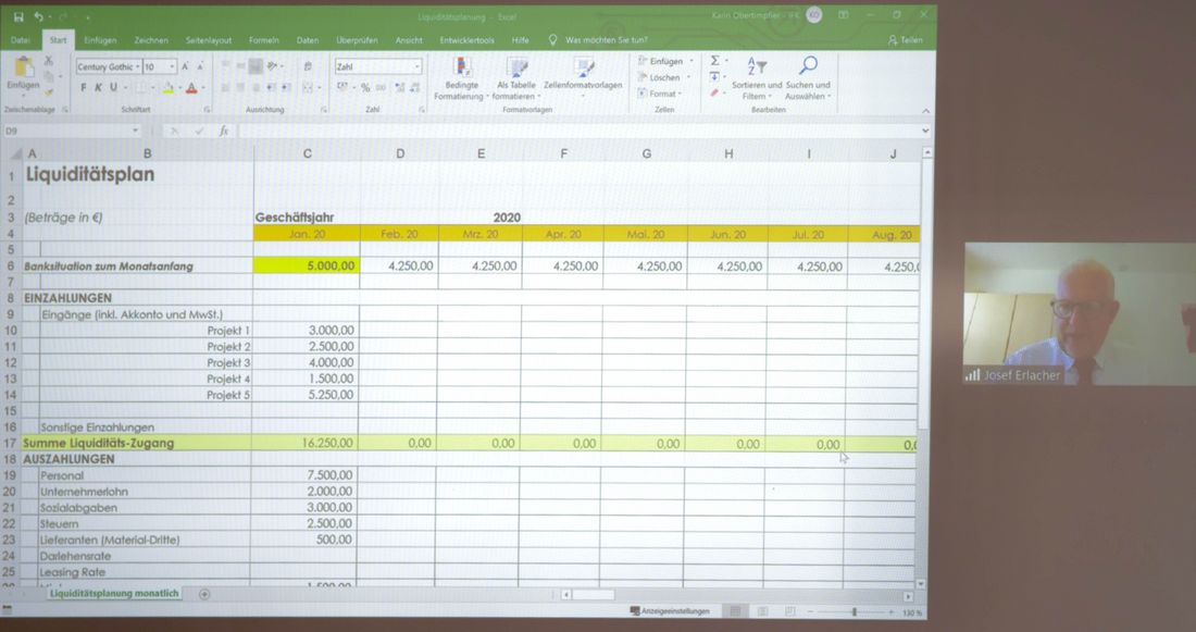 Am Donnerstag, 20. August, lud die Raiffeisenkasse Eisacktal Unternehmer zum Webinar „Liquidität planen und sichern“ ein. Darin zeigten die Unternehmensberater Josef Erlacher und Karin Obertimpfler der IFK-Consulting anhand von Praxisbeispielen und eines einfachen Tools, wie man einen Liquiditätsplan erstellt und selbstständig weiterführt. Vom Leiter des Firmenkundengeschäfts Martin Ragginer erfuhren die Webinar-Teilnehmer darüber hinaus, wie sie eine Finanzierung aus dem #NEUSTARTSÜDTIROL-Paket in Anspruch nehmen können. Sie erhielten somit nicht nur ein wirkungsvolles Instrument zur Sicherung der zukünftigen Zahlungsfähigkeit ihres Unternehmens, sondern auch wichtige Tipps, um sich in der heutigen Zeit günstig Liquidität zu beschaffen.