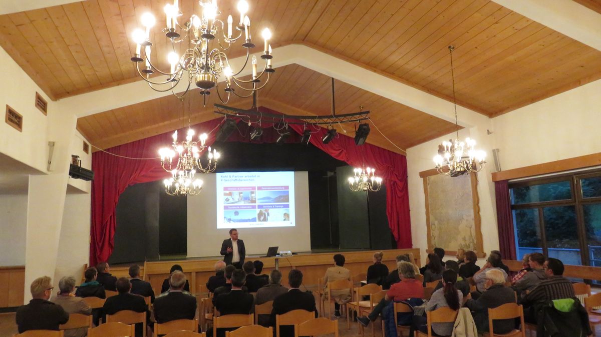 Am 15.06.2016 hat im Kulturhaus in Burgeis die Veranstaltung der Raiffeisenkasse Obervinschgau, der Ferienregionen Obervinschgau und Reschenpass sowie des HGV mit dem Titel „Südtirol um jeden Preis? - Kluge Preisstrategien für die Ferienhotellerie“ mit Stefan Gruber von der Unternehmensberatung Kohl&Partner stattgefunden. Über 30 Teilnehmer haben sich trotz später Stunde im Kulturheim in Burgeis zur Veranstaltung eingetroffen.