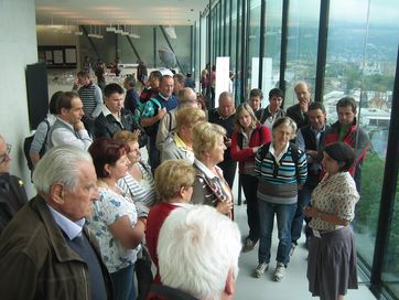 Wie schon seit vielen Jahren wurde auch heuer bei der Generalversammlung der Raiffeisenkasse Schenna unter den anwesenden Mitgliedern ein Mitglieder-Ausflug verlost. Die 15 Losgewinner durften jeweils eine Begleitung nach Wahl mitnehmen; auch die Schenner Böhmische wurde als Dank für die musikalische Umrahmung der Vollversammlung zur Fahrt eingeladen. Außer dem Obmann Stefan Klotzner waren auch Direktor Klaus Gufler und Vizedirektor Hermann Orian mit dabei; sie leiteten den Ausflug und gestalteten das reichhaltige Programm. Am Mittwoch, den 24. Mai um 8 Uhr starteten die 35 Teilnehmer aus Schenna, Verdins und Tall und kamen, nach einem kurzen Stopp in Freienfeld, um 10 Uhr am Bergisel zur Besichtigung des Rundgemäldes an. Eine redegewandte und geschichts- bewanderte Führerin erwartete sie und gab anhand der in der Vorhalle aufgestellten Holzfiguren von Andreas Hofer, Josef Speckbacher, Erzherzog Johann u.a. einen guten Überblick über das Jahr 1809 und die Schlacht am Bergisel. Dann wurde das Rundgemälde selbst besichtigt. Besonders beeindruckend war das riesige Rundgemälde vor allem für jene, die es zum erstenmal gesehen haben. Aber auch wer es sogar schon an seinem alten Platz in Innsbruck gesehen hat, fand es an seinem neuen Platz im eigens erbauten Bergisel-Museum viel eindrucksvoller in seiner Weite und in der guten Beleuchtung.