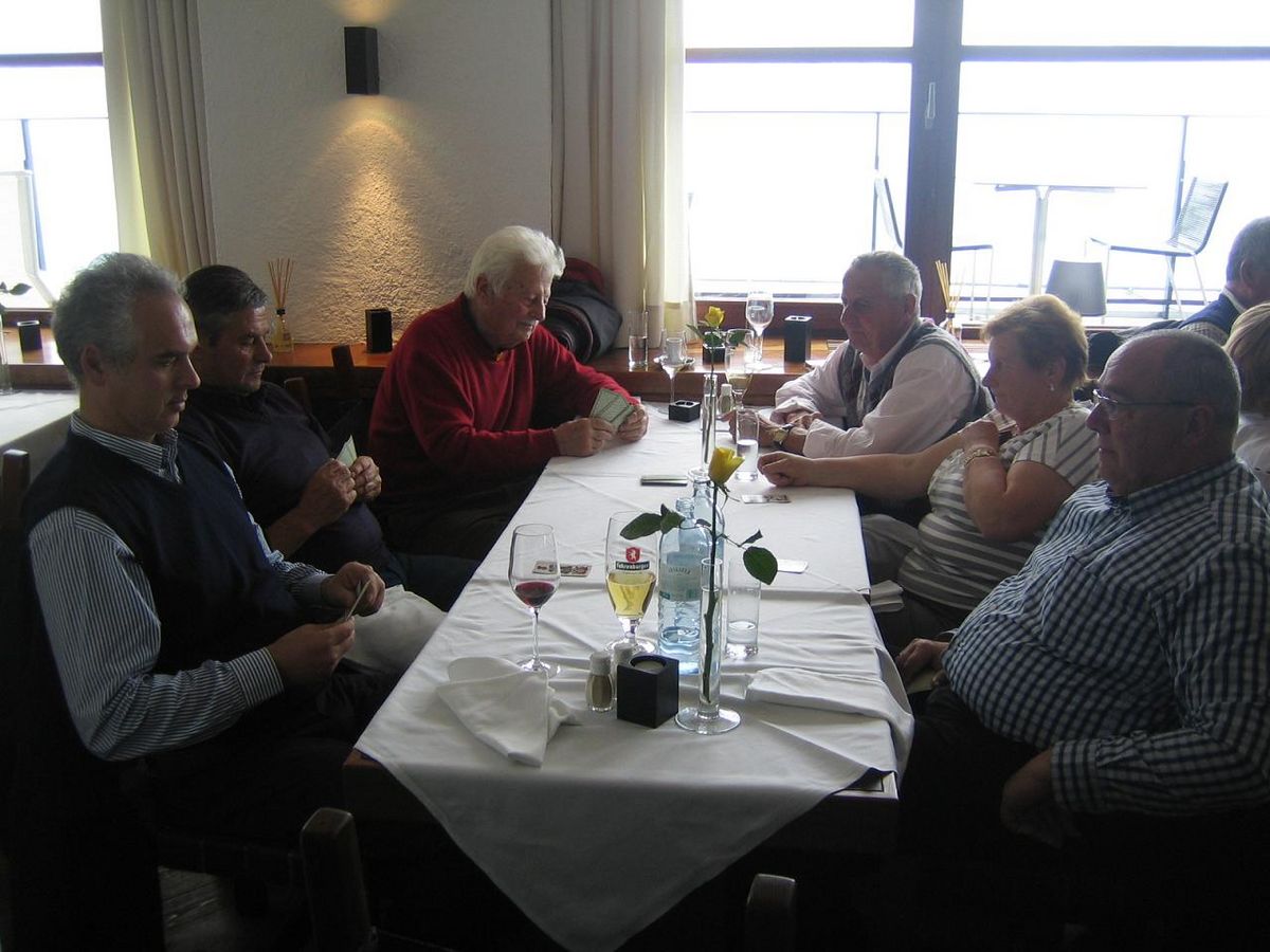 Nach der Besichtigung ging es weiter zum nächsten Ziel, zur Talstation der neuen Hungerburgbahn, von wo aus die Ausflügler in 20 Minuten mit der neuen Bahn auf die Hungerburg und dann mit der Seilbahn auf die Seegrube befördert wurden, wo im Panoramarestaurant das gute Mittagessen eingenommen wurde. Dabei konnte ein wunderbarer Blick auf Innsbruck und die umliegenden Berge genossen werden, Sogar Schneehalden waren noch auf der Seegrube, einem wichtigen Wintersport- gebiet, zu sehen, aber es konnte eine wunderbare Ruhe genossen werden, da außer Saison. Nach zwei schönen Stunden auf 2400m Meereshöhe fuhren die Schenner wieder mit der Seilbahn und der Hungerburgbahn ins Zentrum von Innsbruck zurück.
