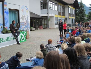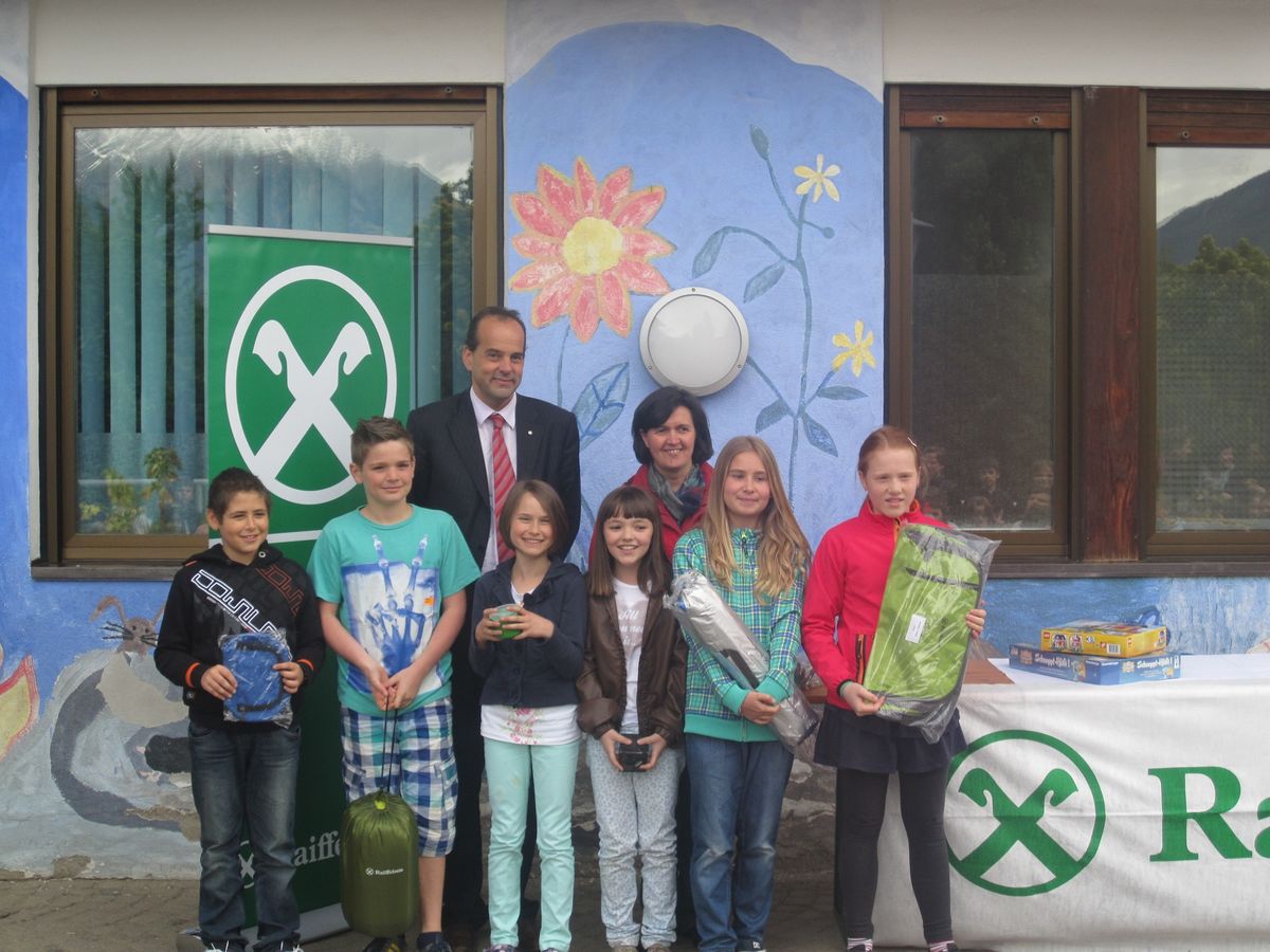 Der Geschäftsführer der Raiffeisenkasse Schenna Klaus Gufler nahm die Prämierung der besten Bilder vor. Wie auch in den vergangenen Jahren gab es heuer wieder einen Klasssenpreis, den die 4 A gewonnen hat und sich auf ein gemeinsames Eis essen freuen konnte. Der Überraschungsgast des Tages war ein Uhu, den Herr Campei Willy von der Pflegestation Dorf Tirol mitbrachte. Er erklärte den Kinder die Eigenschaften und die Lebensweise von Uhu´s und anderen wilden Vögeln und beantwortete die vielen Fragen der interessierten Kinder. Heuer wurden erstmals zusätzlich 2 Preise vergeben, für jene, die beim Quiz auf Landesebene gewonnen haben. Als kleine Jause zwischendrin spendierte die Raiffeisenkasse Pizza und Getränke für alle.