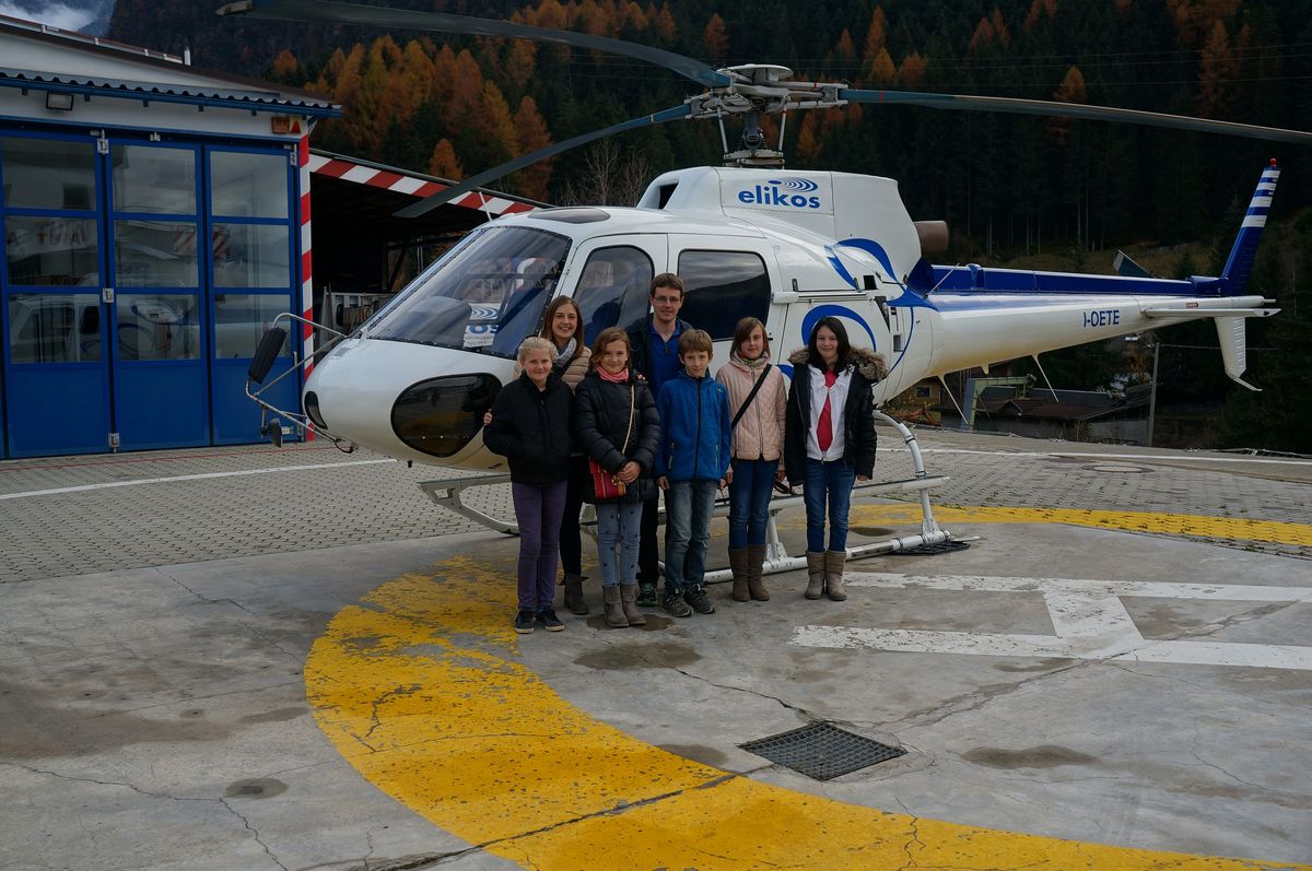 Am Freitag, den 14. November 2014 war es dann endlich soweit und die Gewinner des diesjährigen Go-Card-Gewinnspieles konnten ihren Preis einlösen! Mit den Begleitpersonen Markus und Maria Theresia von der Raiffeisenkasse machten sich die glücklichen Gewinner am frühen Nachmittag auf den Weg nach Pontives ins Grödnertal. Am Ziel angekommen, gab es kaum Zeit, um über Nervosität oder Höhenangst nachzudenken und sogleich mussten die Ersten in den Hubschrauber steigen. Nach 15 Minuten grandioser und atemberaubender Bergwelt, landeten sie wieder sicher am Boden und der zweite Flug mit den restlichen Gewinnern konnte starten. Auch dieser Rundflug zum Schlern, Rosengarten, Plattkofel, Langkofel, Sella Gruppe, Puez und den Geisslern mit einem herrlicher Ausblick auf die Seiser Alm und das Grödnertal mit Wolkenstein, St. Cristina und St. Ulrich, endete viel zu schnell! Begeistert über die neue Erfahrung und das Abenteuer wurde noch eine Trinkpause mit Stärkung eingelegt und anschließend wurde die Heimfahrt angetreten. Der erlebnisreiche Nachmittag endete dann um 17.00 Uhr in Schenna.