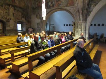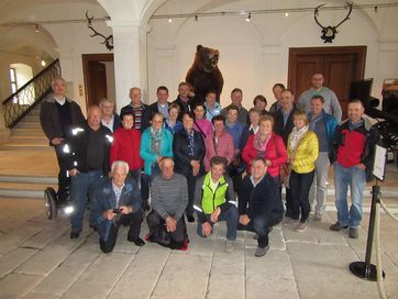 Weiter ging es zur Besichtigung der am südlichen Stadtrand gelegenen Pfarrkirche „Maria Moos“ welche zu Beginn des 15. Jahrhunderts durch edle und wohlhabende Sterzinger Familien finanziert wurde. So langsam machte der Hunger auf sich aufmerksam, sodass wir mit dem Bus das über die Landesgrenzen hinaus bekannte historische Wirtshaus am Berg „Pretzhof“ in Pfitsch aufsuchten. Dort erwartete uns ein zünftiges Mittagessen zusammengestellt aus hofeigenen Gerichten und eigener Tierhaltung. Noch ausreichend Zeit für ein kurzes Watterle, dann ging es weiter nach Ratschings/Mareit zur Besichtigung des Landes-Jagd- und Fischereimuseum „Schloss Wolfsthurn“. Beeindruckt von den vielen Ausstellungsexemplaren der Tierwelt und den altertümlichen Gewehr- und Schusswaffen, starteten wir den Bus gegen Abend wieder zur Rückfahrt in Richtung Schenna.