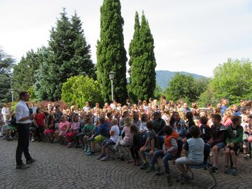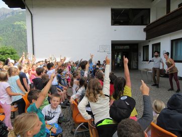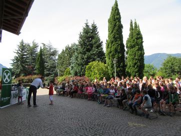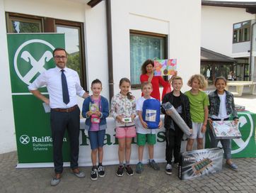 Kurz vor Schulende, an einem wunderschönen Donnerstag im Juni, fand im Schulhof der Grundschule Schenna die Prämierung des Malwettbewerbs der Schüler von Obertall, Verdins und Schenna statt. Fast 150 Schüler beteiligten sich am diesjährigen Wettbewerb zum Thema: „Freundschaft ist ….bunt!“. Am Beginn der Veranstaltung stand die Show des Künstler-Duos „Carpadiem“ auf dem Programm, die die Kinder mit großem Interesse, mit staunenden Augen und lautem Gelächter verfolgten. Mit großem Applaus verabschiedeten sie das Künstlerpaar und blickten gespannt auf die Prämierung der Sieger, die vom Geschäftsstellenleiter Schweitzer Ulrich, Frei Maria und Lösch Birgit vorgenommen wurde. Zusätzlich wurde ein Preis für den landesweiten Quizsieger Unterthurner Felix vergeben. Die Sieger-Bilder des Malwettbewerbs sind in der Raiffeisenkasse ausgehängt und können noch einige Wochen begutachtet werden. Bei dieser Gelegenheit bedankt sich die Raiffeisenkasse Schenna bei der Jury und allen Lehrpersonen für ihren Beitrag zum guten Gelingen der Veranstaltung.