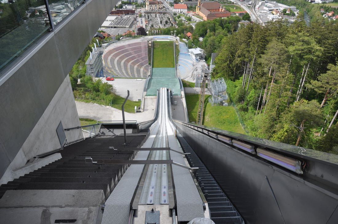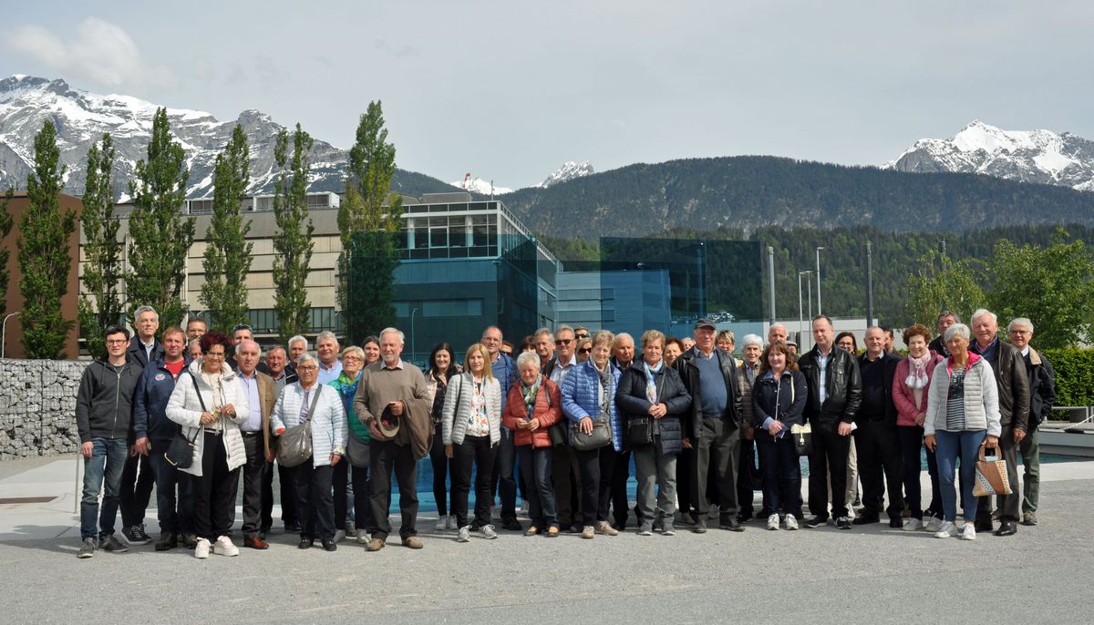 Beim anschließenden Mittagessen im Gasthof Purner bei Thaur tauschten sich die Mitglieder ausführlich über die gewonnenen Eindrücke aus und konnten sich so für das nächste anstehende Highlight stärken. Denn im Anschluss ging es zur Bergisel-Schanze nach Innsbruck, welche durch ihre moderne Architektur eine besondere Faszination ausübt. Geplant von Stararchitektin Zaha Hadid bietet die Aussichtsterrasse einen atemberaubenden Ausblick auf Innsbruck und bietet einen Eindruck der Tollkühnheit der Skispringer.