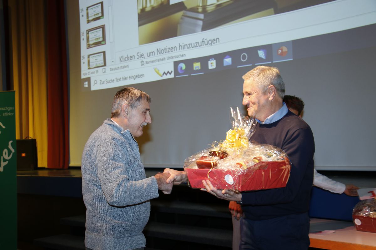 Den 3. Platz hat Mitglied Gamper Karin, hinter dem zweitplatzierten Mitglied Mitterhofer Johann belegt. Den 1. Platz hat sich Obmann Wolfram Gapp erspielt, welcher gleich darauf scherzte, dass ihm wohl die Wenigsten, er eingeschlossen, diesen Sieg zugetraut hätten. Seinen Preis, einen Geschenkskorb im Wert von 110,- € schenkte er einer begeisterten Watterin, welche krankheitsbedingt leider nicht am Gaudiwatten teilnehmen konnte.