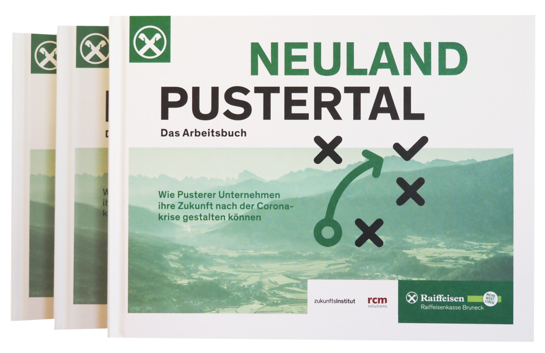 Ende April 2020 haben wir eine Idee veröffentlicht, die im ganzen Land für Aufsehen gesorgt hat: Als größte Genossenschaftsbank Südtirols haben wir den Start des Projekts "NEULAND Pustertal" präsentiert, das wir gemeinsam mit dem Südtiroler Beratungsunternehmen rcm solutions und seinem Partner, dem renommierten Zukunftsinstitut mit Sitz in Wien und Frankfurt in kürzester Zeit initiieren konnten. Ziel war es, am kritischsten Zeitpunkt der Coronakrise schon an die Herausforderungen der Zukunft zu denken und uns die Frage zu stellen, wie wir beim Neustart die Menschen und Unternehmen im Pustertal am besten unterstützen können.