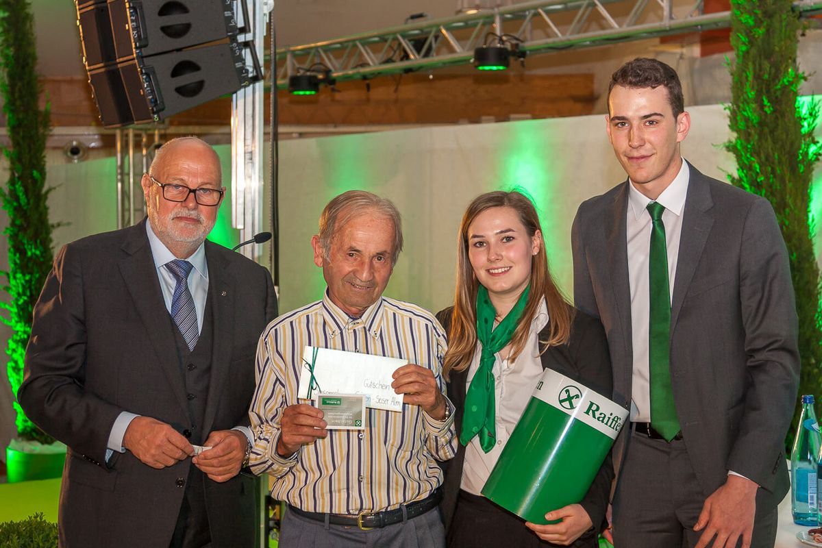 Alt-Obmann Josef Fulterer und Verwaltungsrat Richard Fill wurden für Ihre langjährige Tätigkeit im Dienste der Mitglieder geehrt. Verabschiedet wurde auch Erna Rier welche im Juni nach 41 Dienstjahren in der Raiffeisenkasse Ihren Ruhestand antritt.