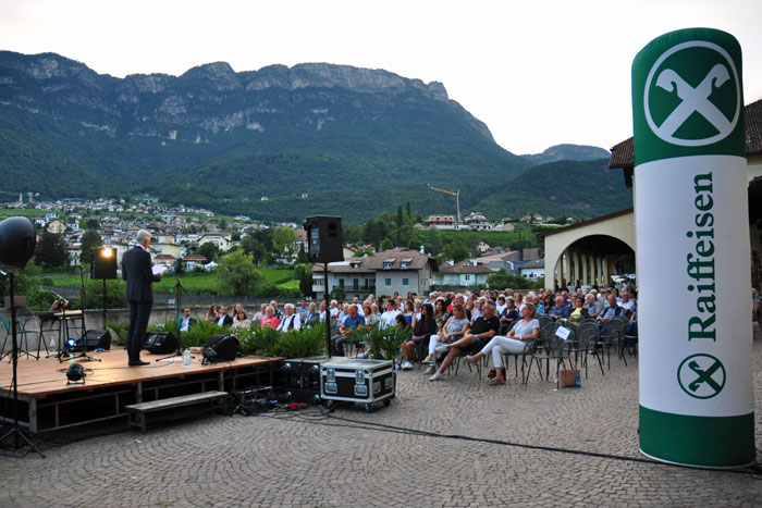 Es war uns eine große Freude unsere Mitglieder nach einer knapp zweijährigen Pause wieder zu einer Veranstaltung der besonderen Art einladen zu können: Am Montag, den 9. August 2021, und Dienstag, den 10. August 2021, fanden sich pro Abend jeweils über 200 Mitglieder unserer Raiffeisenkasse in der Kellerei Kettmeir in Kaltern ein, um bei sommerlichen Temperaturen einen stimmungsvollen Abend genießen zu können. Nach einem Sektaperitif stand das rund 90 minütige Konzert von Michael Aster, einem jungen aufstrebenden Künstler aus Girlan, im Fokus. Er wurde von Martin Perkmann, einer musikalischen Größe Südtirols, begleitet.