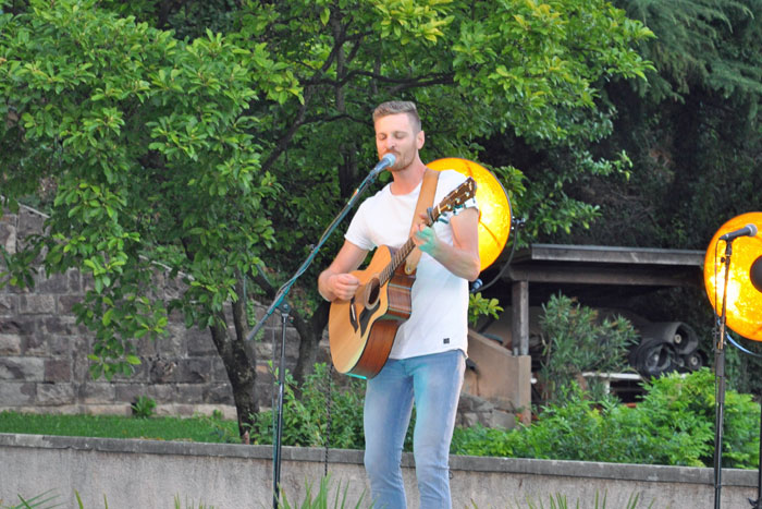 Vor einer großartigen Kulisse gab der Singer-Songwriter Michael Aster im Innenhof der Kellerei u.a. seine Lieder "Verliebte", "Paralleluniversum", "Oben" und "Lissabon" zum Besten. Dabei begeisterten seine unverwechselbare Stimme und seine emotional geladenen deutschen Texte das Publikum. Bewundernswert ist, dass er seine Musikkarriere erst im Jahr 2017 als totaler Quereinsteiger begann. Sein erster Song "Dein Leben" wurde im gleichen Jahr veröffentlicht, kurz nachdem er sich das Gitarre spielen selbst beigebracht hatte.