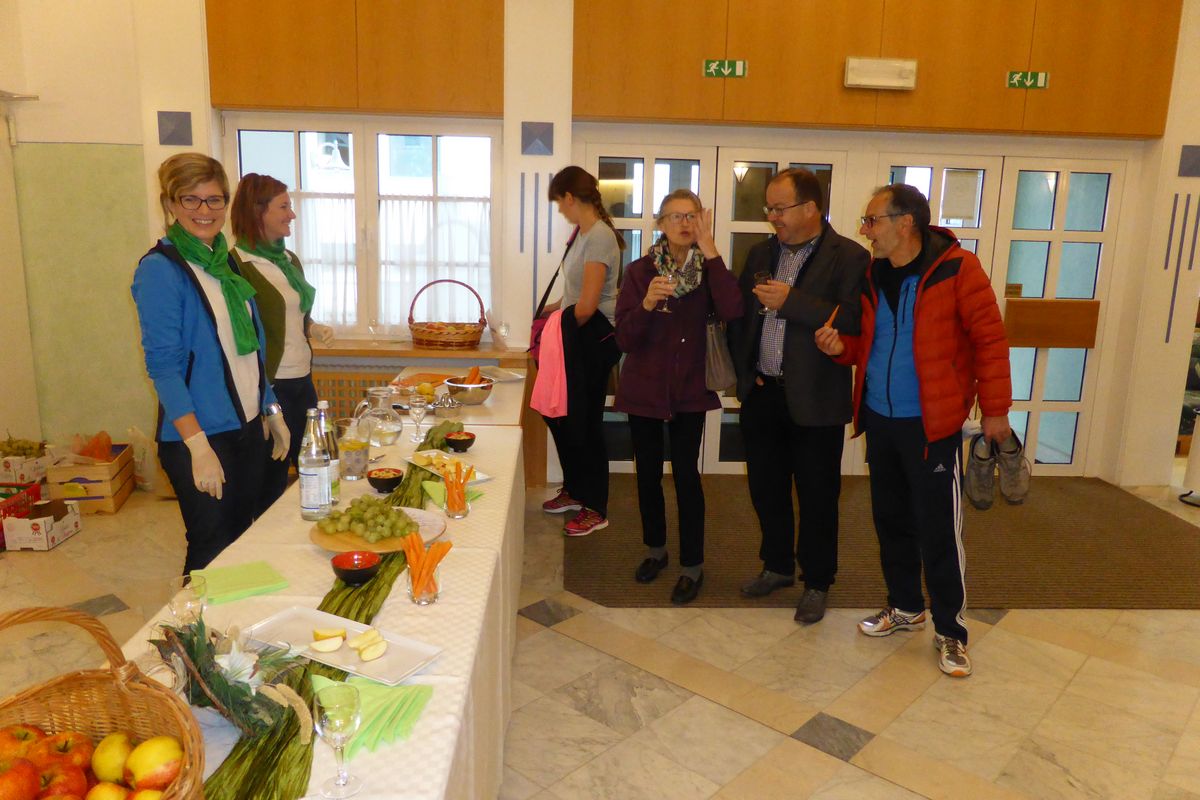 Zwischendurch konnten sich die Mitglieder am gesunden Obstbuffet, vorbereitet von Mitarbeitern der Raiffeisenkasse, stärken und dort in lockerer Runde plaudern.